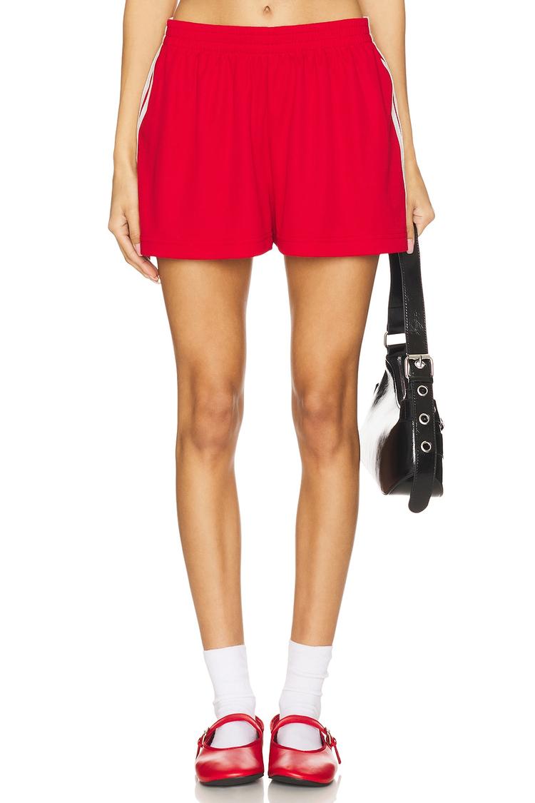 bright red shorts with white detailing