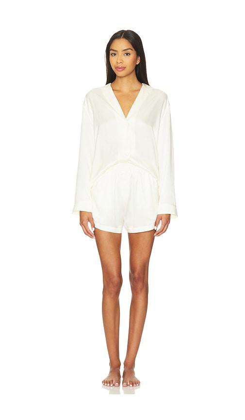 LUNYA WASHABLE SILK BUTTON UP LONG SLEEVE SHORT SET IN IVORY.