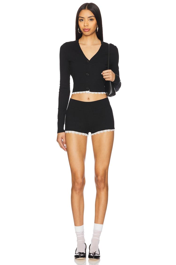 black lace-trim shorts set