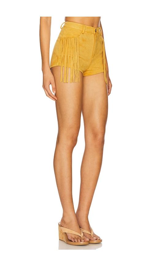 MORE TO COME AUTUMN FRINGE SHORT IN TAN.