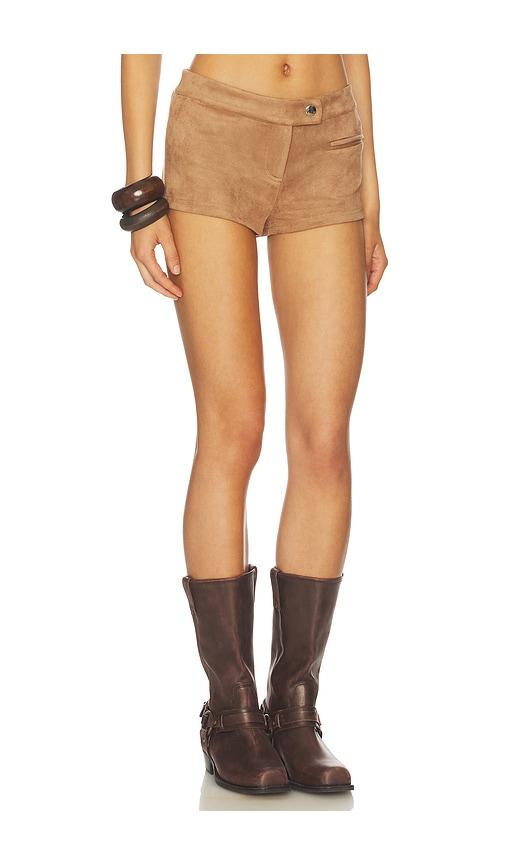 MORE TO COME GRAYSEN FAUX SUEDE SHORT IN TAN.