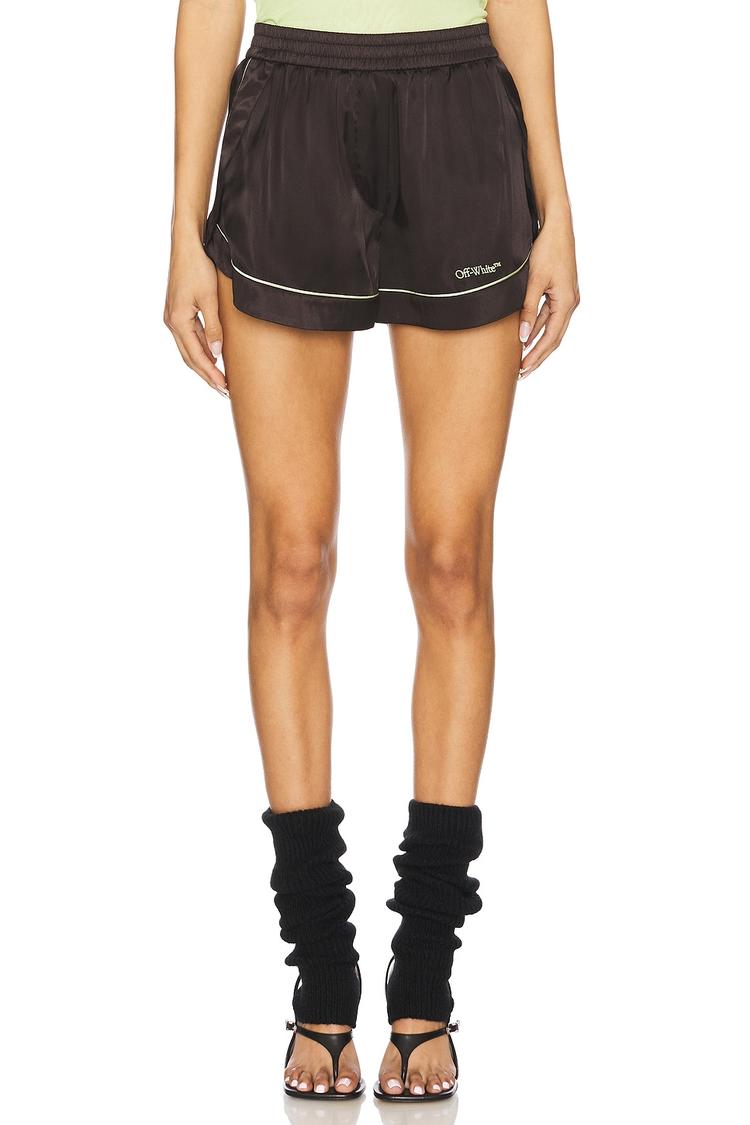 Elevate your at‑home luxury with these satin pajama shorts in a deep black. Crafted from a lightweight acetate‑silk blend, they drape with a fluid, sandal‑soft hand and a relaxed Bermuda silhouette that moves with you. The pull‑on design sits at mid rise on an elasticated waistband for effortless wear, while a clean hem keeps the line sleek. A front embroidery logo adds a refined branded touch, complemented by pale piping along the seams for a retro‑cool edge. Perfect for lazy mornings, hotel nights, or breezy city weekends—pair with a silk cami or an oversized cardigan for an elevated lounge look.