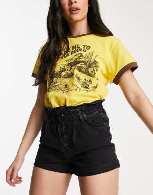 ONLY CUBA PAPERBAG DENIM SHORTS IN BLACK