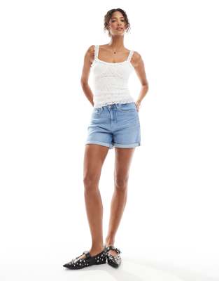 ONLY CUFFED HEM STRETCH DENIM SHORTS IN LIGHT BLUE WASH