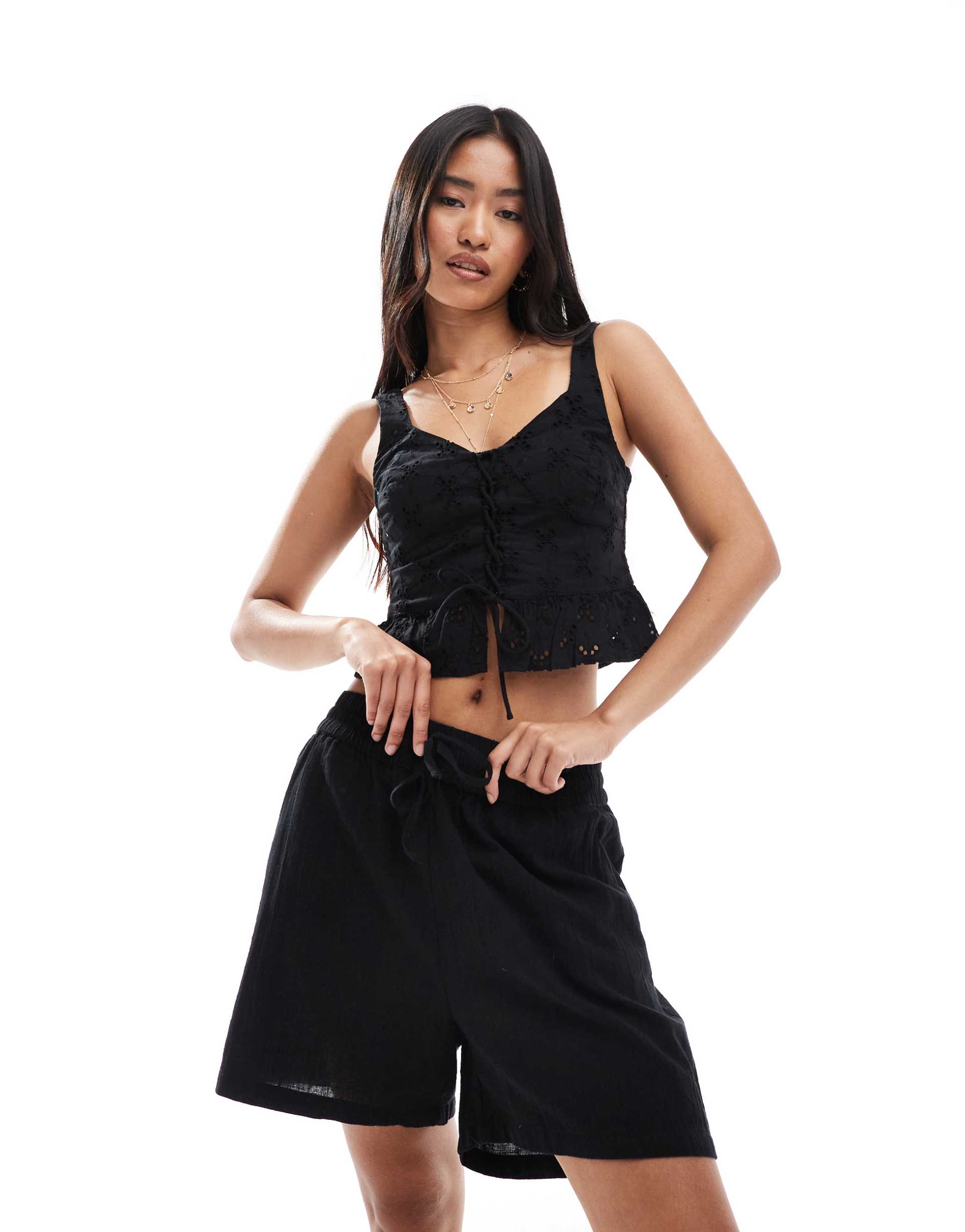 ONLY TIE FRONT TEXTURED SHORTS IN BLACK
