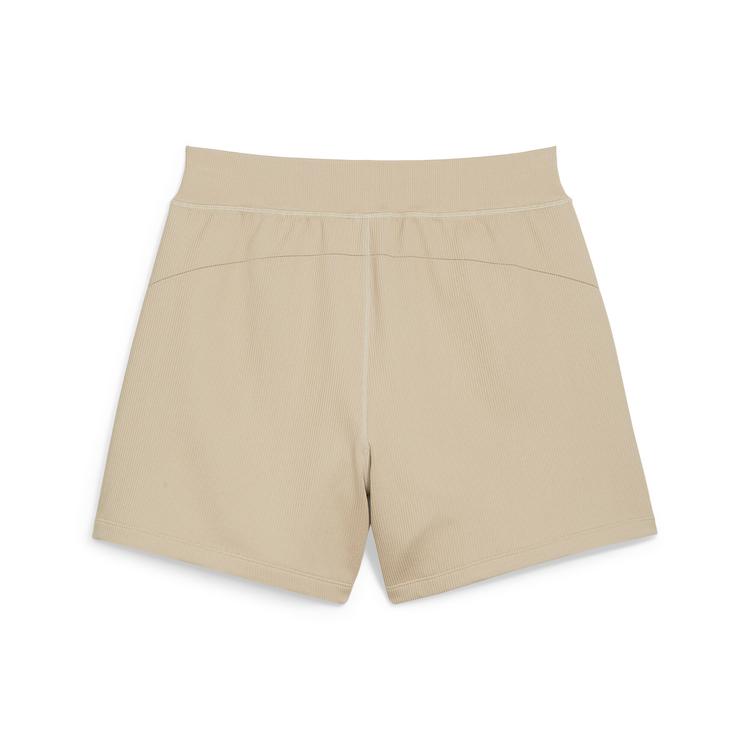 PUMA DARE TO WOMEN'S MUTED MOTION FLARED SHORTS IN BEIGE, SIZE L