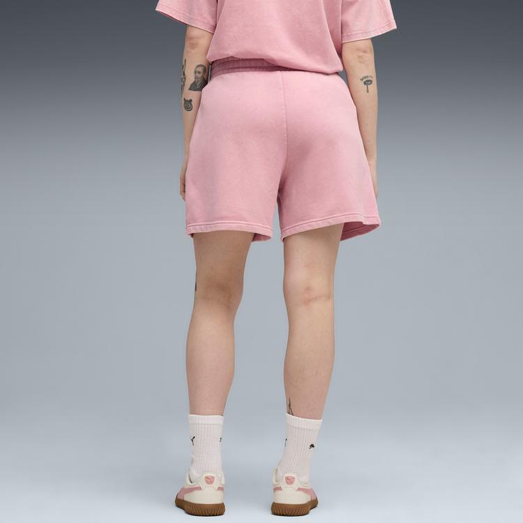PUMA ELEVATED ESSENTIALS ACID WASH WOMEN'S SHORTS IN PINK, SIZE XXL