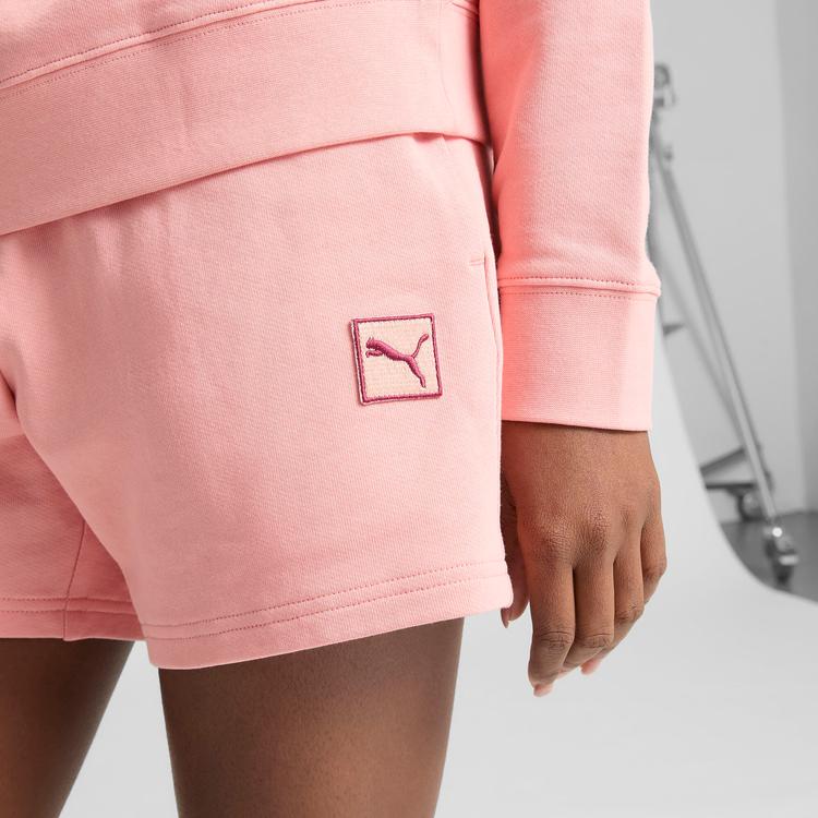 PUMA ELEVATED ESSENTIALS WOMEN'S 5" MID-RISE SHORTS IN PINK, SIZE S