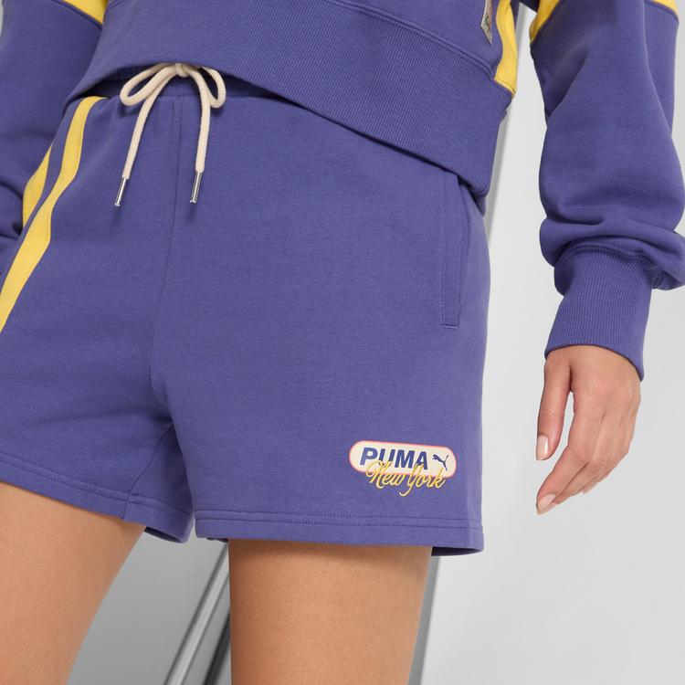 PUMA WARDROBE ESSENTIALS BRIGHT LIGHTS NYC FLAGSHIP WOMEN'S SHORTS IN BLUE, SIZE XS