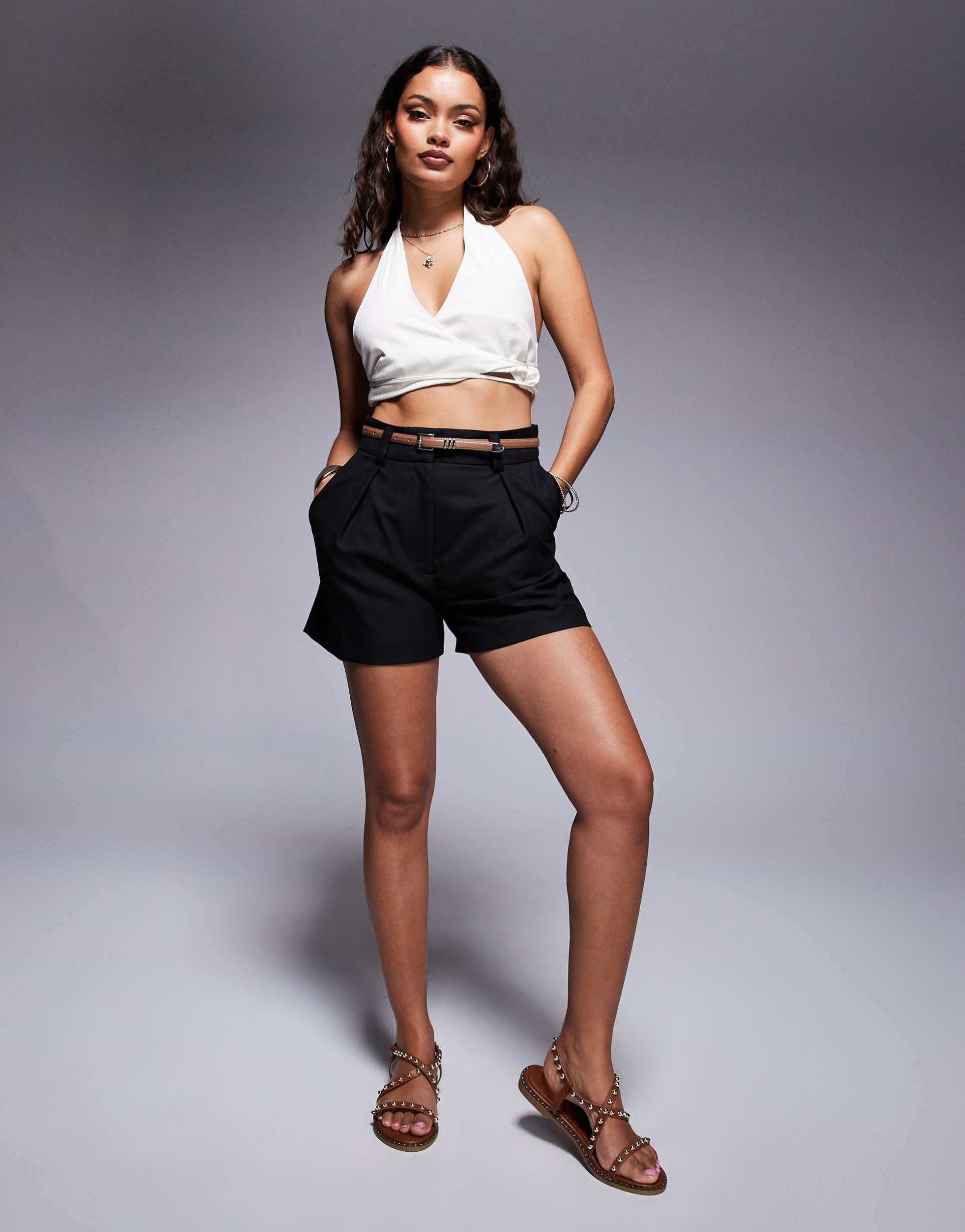 belted shorts for vacation or travel