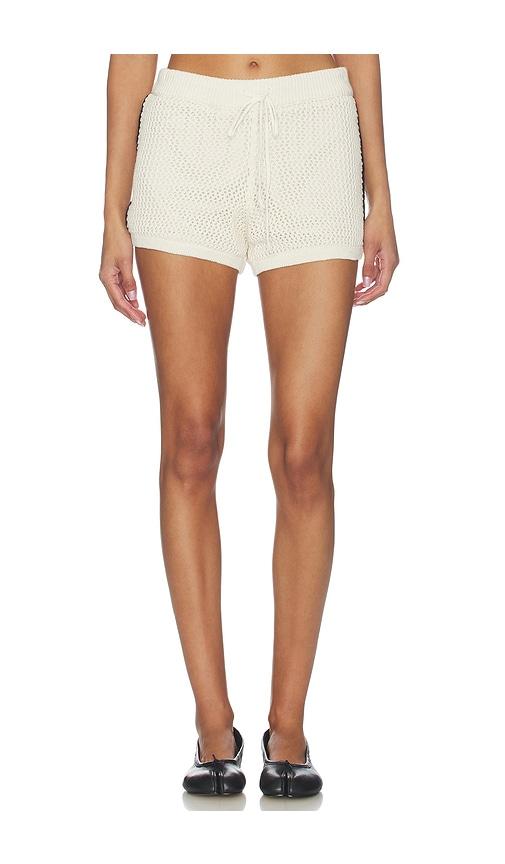SANCTUARY OPEN STITCH TRACK SHORT IN CREAM.