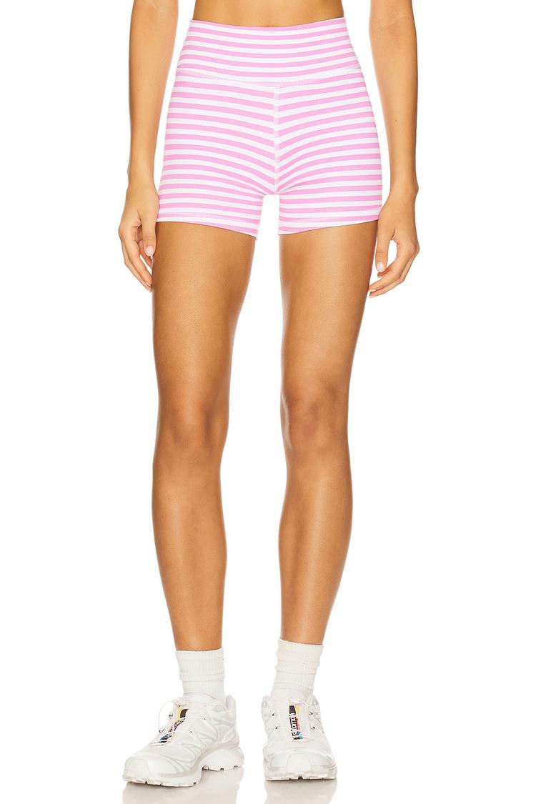 Embrace sporty sophistication with The Sparrow Short, designed for active lifestyles and casual comfort. Crafted from a lightweight, stretchy nylon and spandex blend, these high-waisted shorts showcase a flattering fitted silhouette with a clean hemline. The playful light pink and white striped pattern adds a fresh, youthful vibe, perfect for workouts or athleisure wear. Measuring approximately 30 cm in length, these shorts offer just the right amount of coverage for ease of movement. Whether paired with a crop top or a casual tee, they are your go-to for spring, summer, and early autumn activities. Machine washable for easy care, these shorts bring effortless style and function to your active wardrobe.