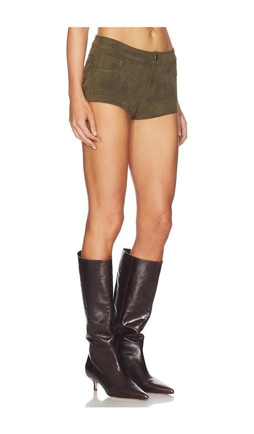 SUPERDOWN FRANNIE FAUX SUEDE SHORT IN OLIVE.