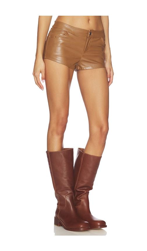 SUPERDOWN GIANNA FAUX LEATHER SHORTS IN TAN.