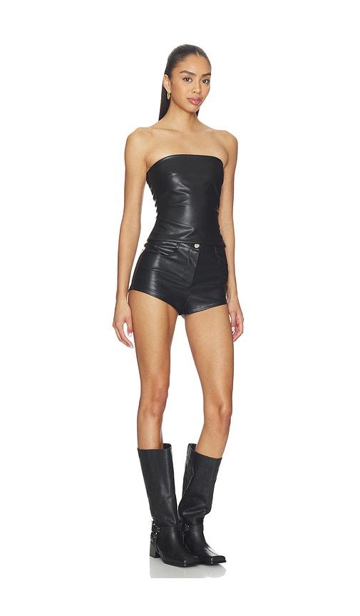 SUPERDOWN KAYLA FAUX LEATHER SHORT SET IN BLACK.