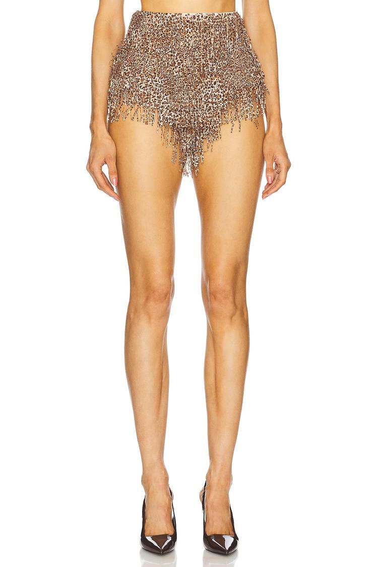 Radiate nightlife glamour with Kata’s micro shorts, a daring blend of luxe shimmer and sculptural fringe. Crafted in 100% polyester, these ultra-short shorts sit high on the waist and fall to a micro length, letting metallic fringe cascade for a move-with-you sparkle. The back zipper keeps the silhouette sleek, while the dense beadwork adds texture and radiant glow in champagne-gold. Pair with a sleek bodysuit or structured blazer for a dance-floor-ready ensemble, or tone it down with a simple tee for a festival-ready street look. A bold, statement piece that elevates evening outfits with minimal effort.