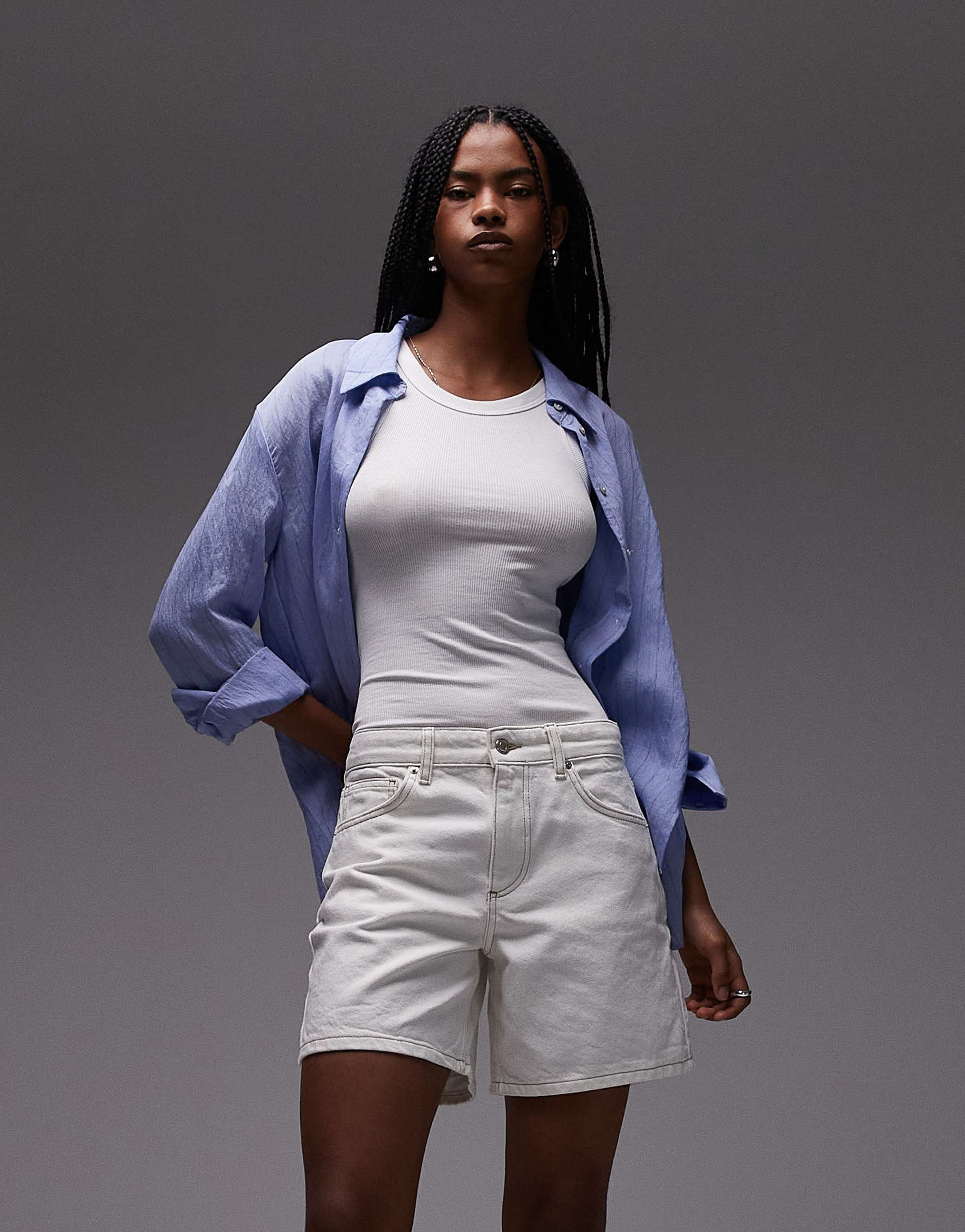 TOPSHOP DENIM CINCH BACK SHORTS IN BONE WHITE