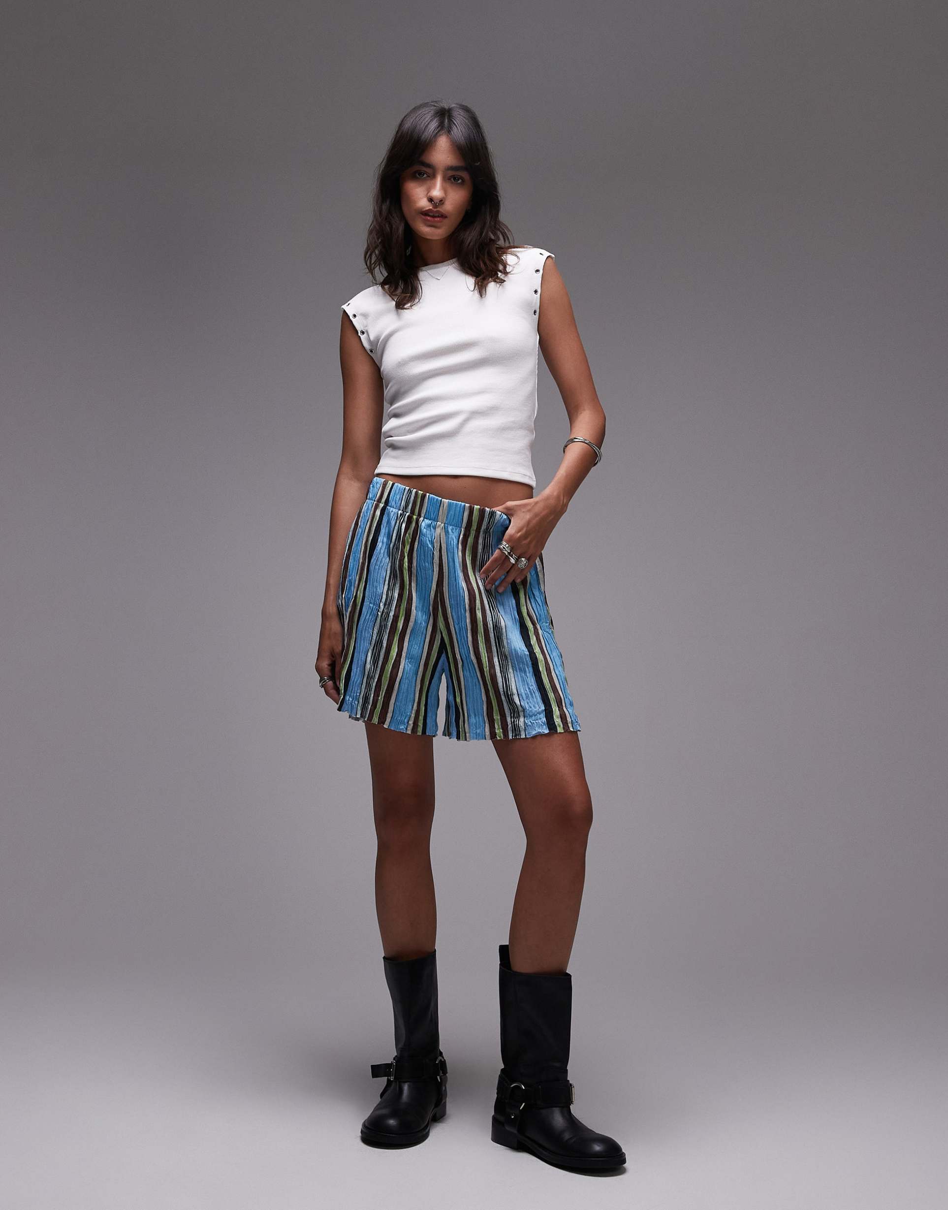 TOPSHOP STRIPED CRINKLE WIDE LEG SHORTS IN MULTI