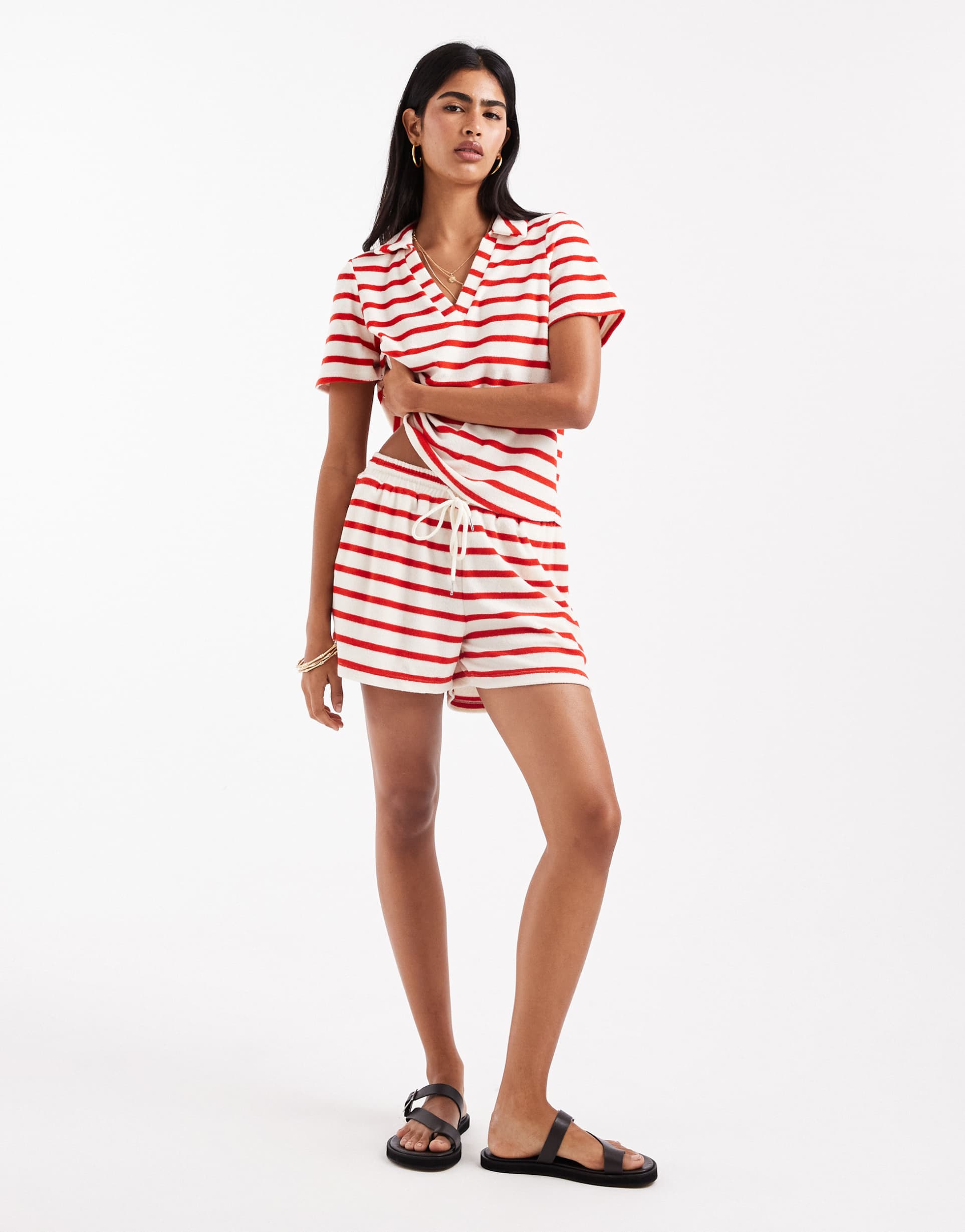 VERO MODA TERRYCLOTH SHORTS IN RED STRIPE - PART OF A SET