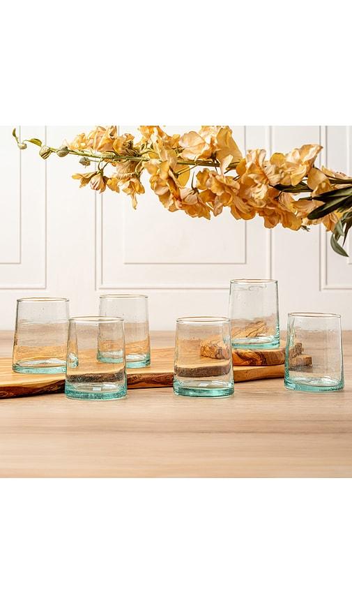 VERVE CULTURE SHORT MOROCCAN CONE GLASSWARE SET OF 6 IN WHITE.