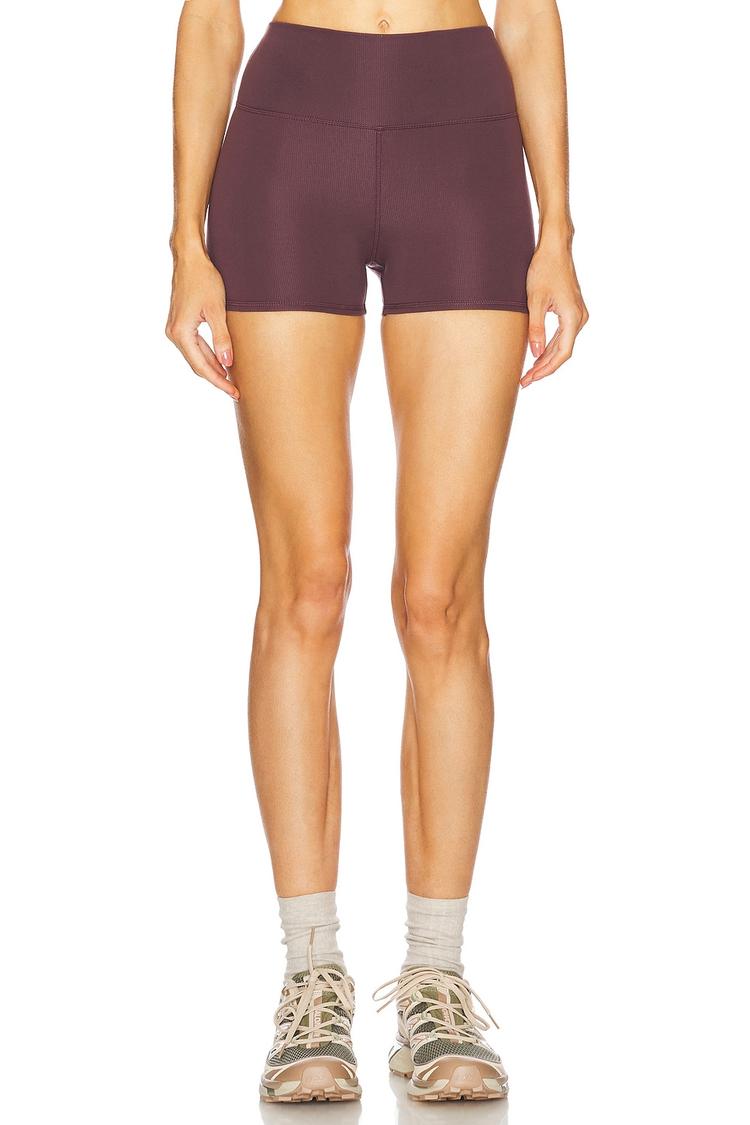 Own the day's momentum in these Lorena 3 Inch Shorts from Wellbeing + Beingwell. The deep Burgundy hue, 82% recycled polyester and 18% elastane blend delivers a soft, four-way stretch that moves with you. A pull-on silhouette with a wide elastic waistband offers a smooth, flattering high rise and a clean mini rib texture for a luxe athletic look. Measuring about 29 cm in length, they sit comfortably at the upper thigh for versatile wearing—from studio workouts to casual errands or vacation-ready days. Pair with a simple tee or tank and your favorite sneakers for easy elegance.