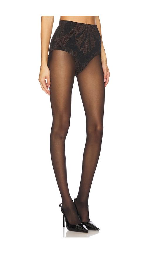 WOLFORD X ETRO METALLIC JACQUARD SHORTS IN METALLIC COPPER.