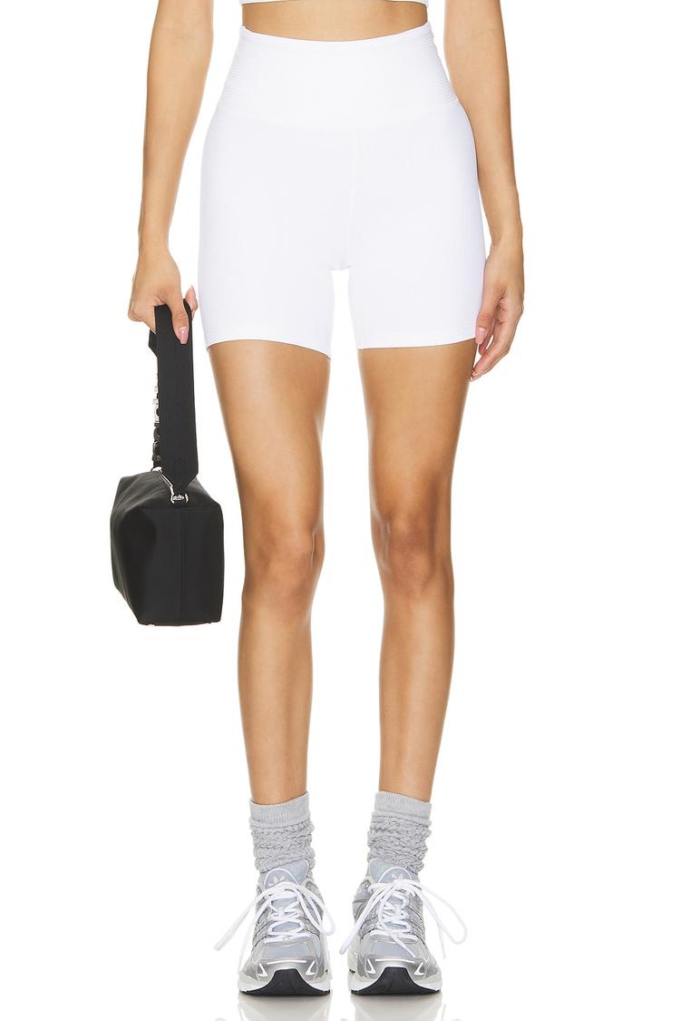 Effortless comfort meets sleek athletic style with these Year Of Ours Ribbed 6" Biker Shorts in pure white. The ribbed nylon fabric offers a flattering, second-skin stretch that hugs the waist into a high-rise silhouette for a long, streamlined line. A wide, elasticated waistband keeps the fit secure and smooth, while clean hems maintain a polished look from hip to mid-thigh. Versatile enough for gym sessions, streetwear, or weekend errands, pair with a cropped top or oversized tee for a minimalist, modern look. A versatile staple that blends sportiness with everyday chic.