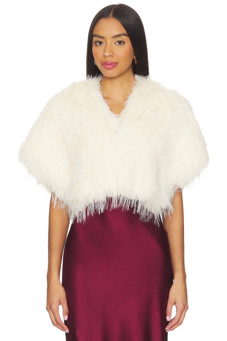 Luxurious and textured, this white faux fur Devin Shrug cape offers hip-length coverage with a regular fit and sleeveless design. Featuring a V-neck and front hook and eye closure complemented by snap buttons at the sides, it is fully lined in polyester for comfort. Ideal for autumn and winter wear, this elegant and classic piece adds chic sophistication to casual outings, date nights, and cocktail events. The rich faux fur fabric provides warmth and a striking silhouette while maintaining a refined, timeless appeal.