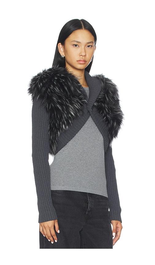 JADED LONDON KNIT FAUX FUR SHRUG IN GREY.