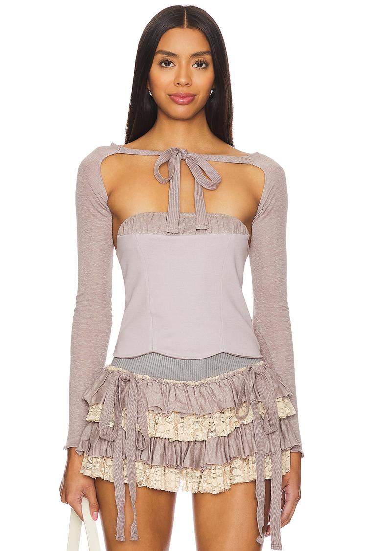 Soft linen fabric and a close fit define this waist length shrug, featuring long regular sleeves and a distinctive open back design with a convenient tie-up closure. Its minimalist, casual chic style in a matte light taupe hue makes it versatile for spring, summer, and autumn wear. Perfect for casual outings, brunch dates, or everyday layering, this shrug adds subtle sophistication and breathability to your ensemble.