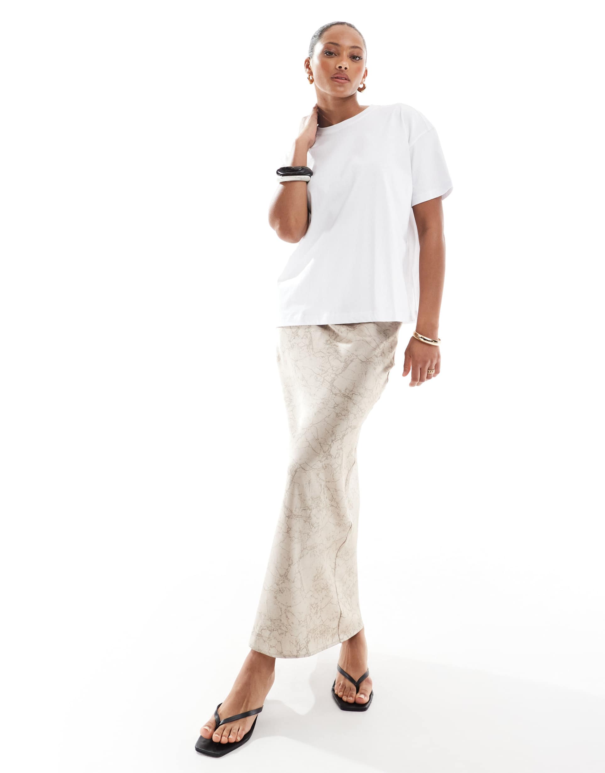 4TH & RECKLESS SATIN MAXI SKIRT IN BEIGE MARBLE PRINT