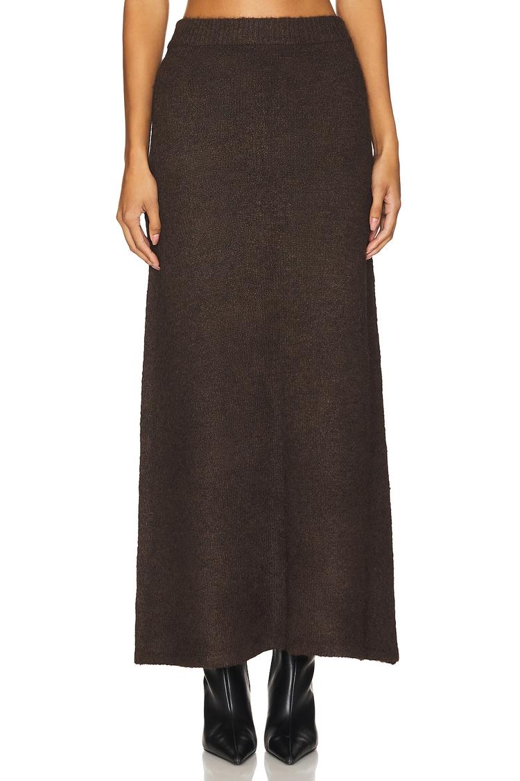 Elevate your cool-weather lineup with the Bailey Skirt in a rich chocolate knit. This full-length, midweight A-line silhouette drapes softly to the floor, delivering a sleek, elongated profile with effortless movement. A pull-on elastic waist keeps styling simple while the polyester-wool-elastane blend brings warmth with comfortable stretch. Dress it up with a chunky knit and heeled boots for a polished work-to-evening look, or pair with a cozy sweater for weekend errands. Clean, versatile, and endlessly layerable—this skirt anchors your fall wardrobe with understated, chic ease.