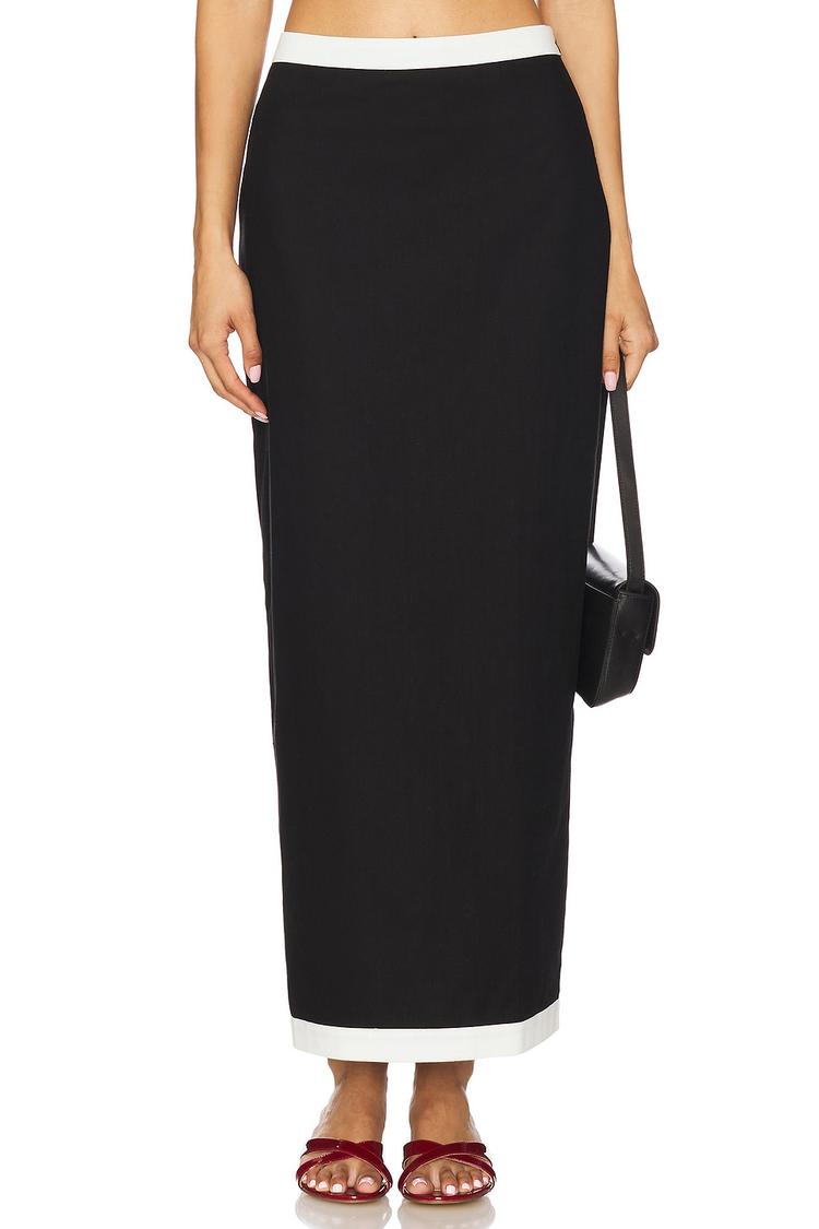 Effortless sophistication meets everyday ease in this Brea Maxi Skirt from 4th & Reckless. Rendered in midweight cotton canvas, the all-black base is punctuated by crisp white contrast trim at the high-rise waistband and a clean, tonal hem. Fully lined for a smooth drape, it moves with you thanks to a discreet back vent and a hidden side-seam zipper for a seamless silhouette. The straight, maxi length creates a timeless, versatile foundation that pairs beautifully with sandals for day or heeled sandals for evening. Elevate your wardrobe with this refined, minimal staple.