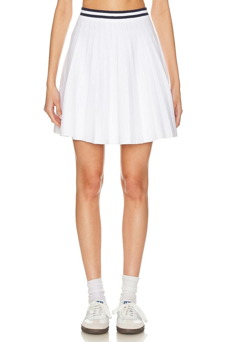 Effortless prep meets sporty charm in this Larissa Pleated Tennis Skirt. Crafted in a crisp white viscose–nylon knit, it moves with you in a short, A-line silhouette that feels light and breathable. A pull-on elastic waistband with navy trim adds a collegiate touch, while evenly spaced pleats give it playful, motion-friendly volume from front to back. Versatile enough for casual days, brunch with friends, or a sunny tennis match, pair with a tucked tee, polo, or cropped sweater and clean sneakers for a polished, all-season look that elevates everyday outfits.