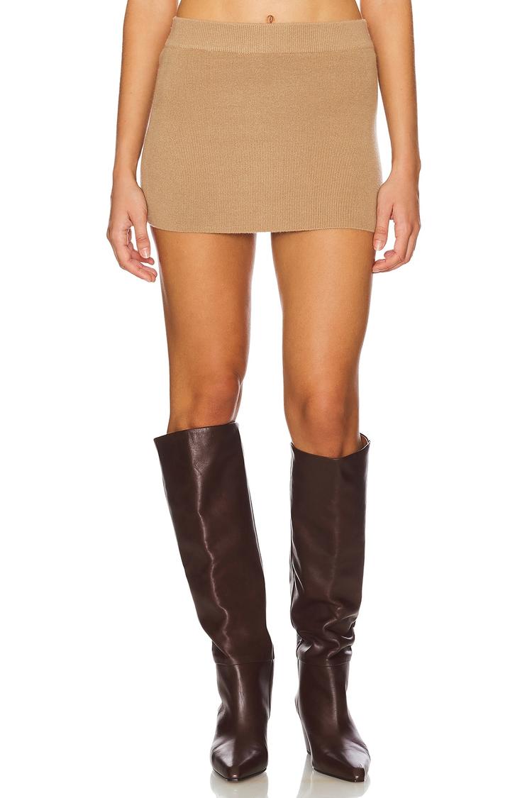 Soft luxury meets everyday ease in this cashmere mini skirt. Crafted from 100% cashmere, the rib-knit fabric hugs the silhouette with a polished, pull-on fit and an elasticized waistband for everyday comfort. In a warm beige, the clean, unlined design keeps the look sleek and versatile. A modern, figure-skimming length pairs beautifully with oversized knits, knee-high boots, or tights for cooler days. Wear from desk to dinner and beyond—minimalist chic that moves with you, season after season. Effortless layering, refined texture, and a timeless silhouette make it a go-to staple.