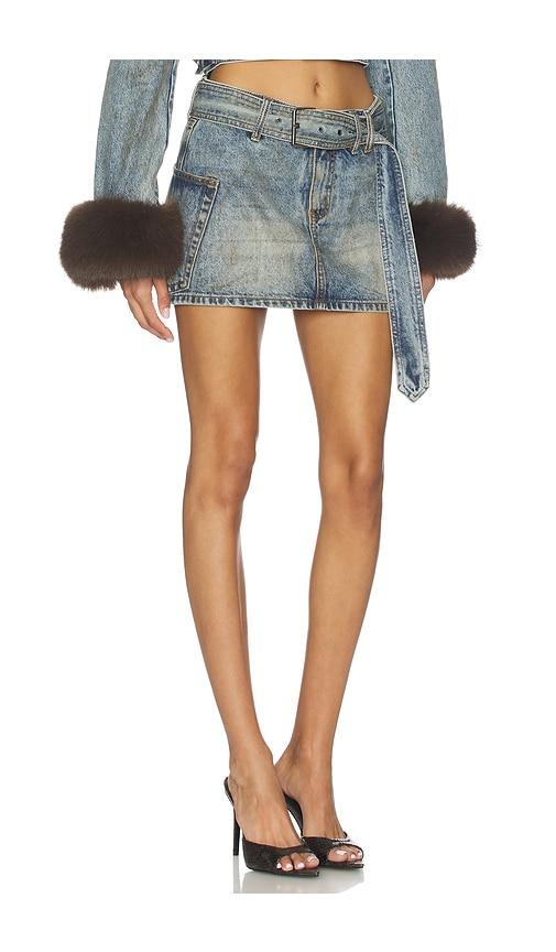 AFRM THE CHIPPY BELTED MICRO MINI SKIRT IN BLUE.