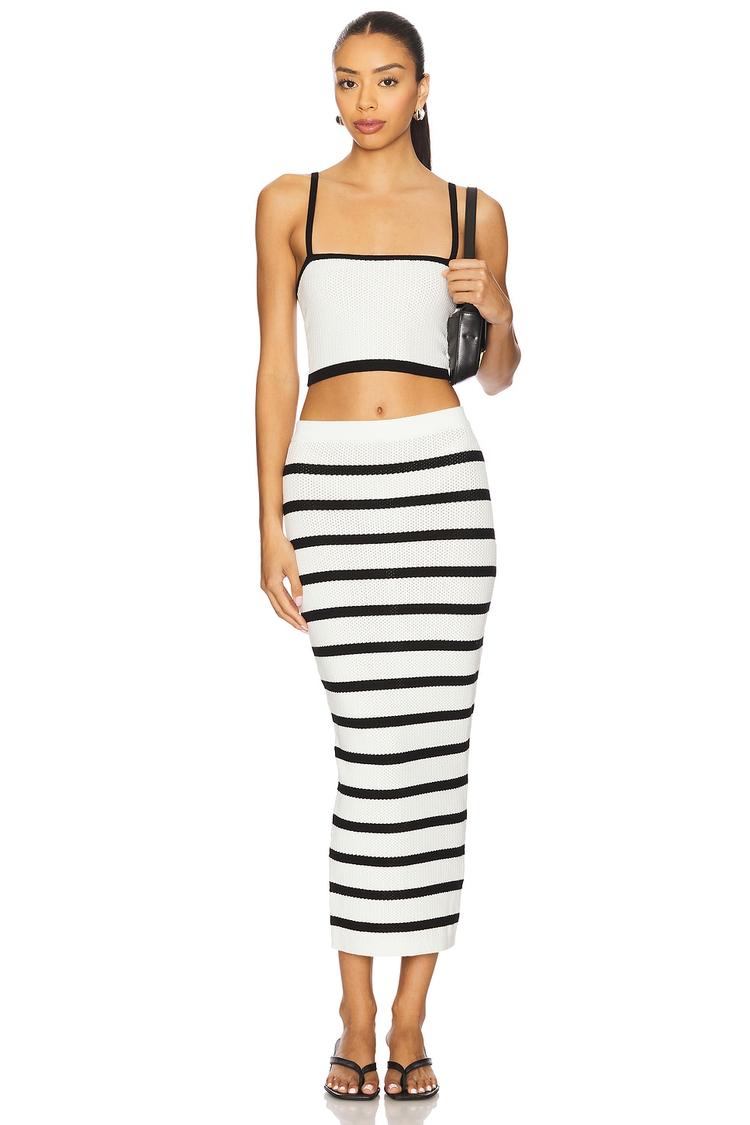 Bring playful charm to everyday styling with this Lola Maxi Skirt from All The Ways. Crafted from a midweight, stretchy knit blend of viscose, nylon, and elastane, this fitted skirt embraces a flattering mid-rise and a clean hemline that falls gracefully to midi length. The classic white base with bold black horizontal stripes creates a timeless, modern look perfect for casual outings, brunch dates, or vacation days. Featuring a comfortable elasticated waistband with pull-on ease, this skirt offers both style and comfort. Pair it with the matching cropped top or your favorite tees for versatile, chic appeal that effortlessly elevates your warm-weather wardrobe.