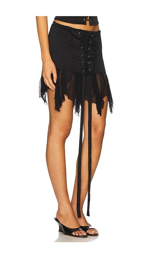 AMOR MIA METAMORPHOSIS MINI SKIRT IN BLACK.