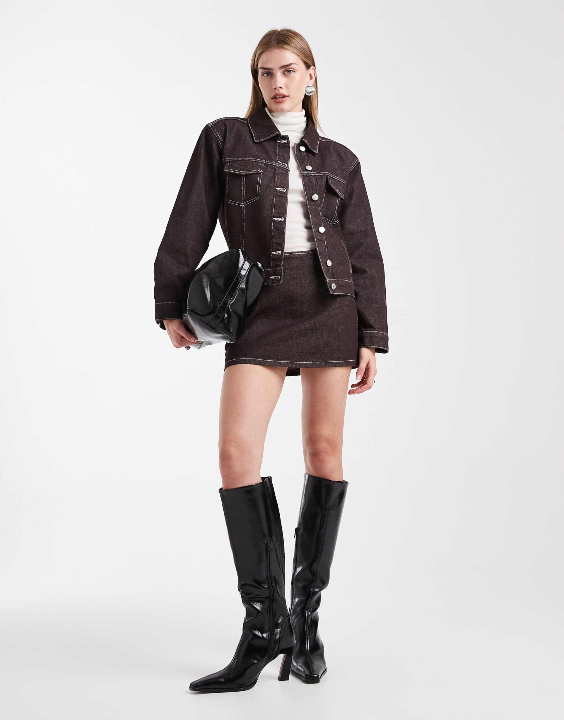 Elevate your everyday with this ASOS DESIGN clean denim micro mini skirt in a rich dark brown. The high-rise, slim-fit silhouette sits sleekly at the waist, with a back zip closure that delivers a clean, uninterrupted line. Crafted from 100% cotton denim, the solid tone makes it effortless to pair with cropped tees, chunky knits, or a tailored blazer for a city-chic look. Whether you’re teaming it with knee-high boots or sneakers, this versatile piece adds modern edge to casual outfits and easy nights out alike.