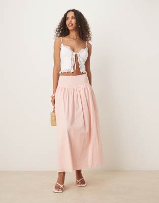 ASOS DESIGN DROPPED WAIST VOLUME MIDI SKIRT IN WASHED PINK