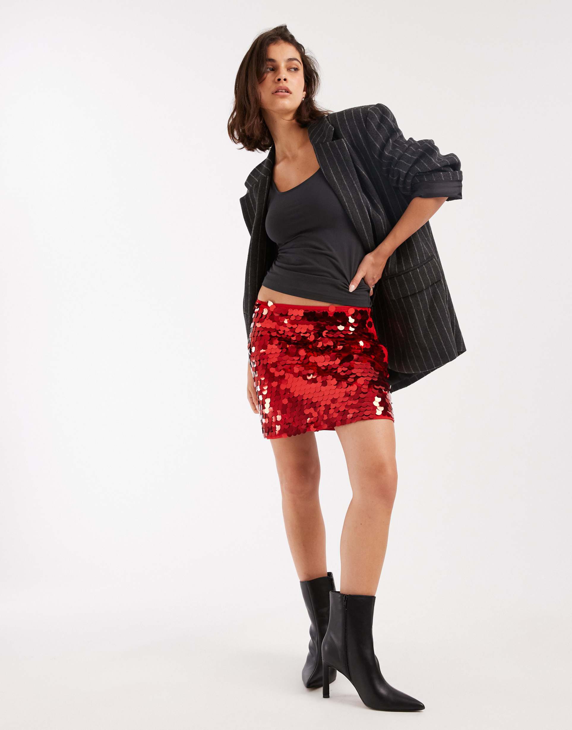 Bring vibrant energy to your evening wardrobe with this ASOS DESIGN large sequin mini skirt in bright red. Crafted from soft, stretchy cotton mesh, this high-rise skirt features an all-over sequin embellishment that catches the light beautifully, creating a dazzling effect. The flat-front waistband and side zipper closure ensure a sleek silhouette and easy wear. Its mini length and regular fit make it perfect for night outs, cocktail parties, or girls' nights when you want to stand out effortlessly. Pair it with a fitted top and ankle boots for a chic, glamorous look that shines with every step.