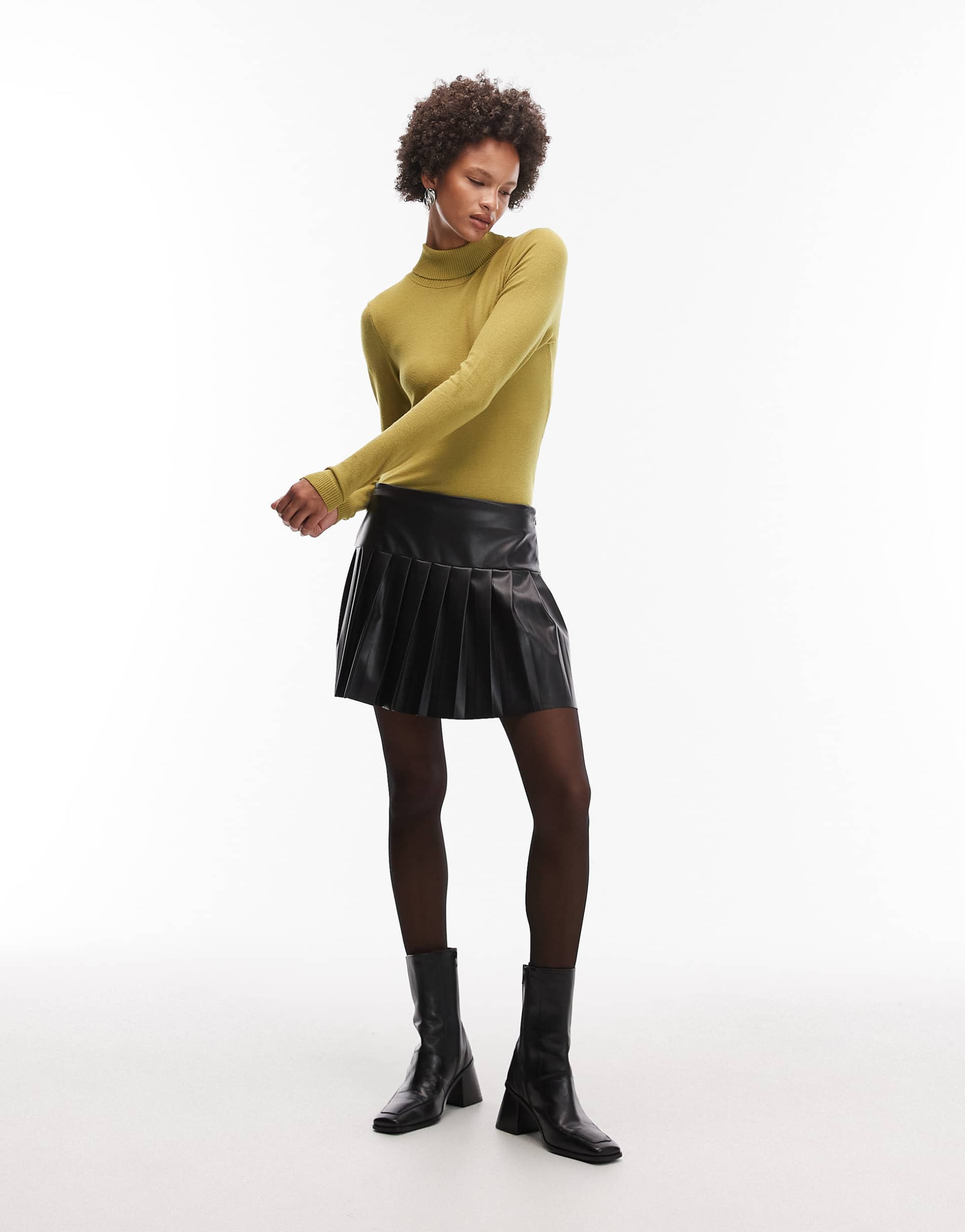 ASOS DESIGN PU PLEATED MINI SKIRT IN BLACK
