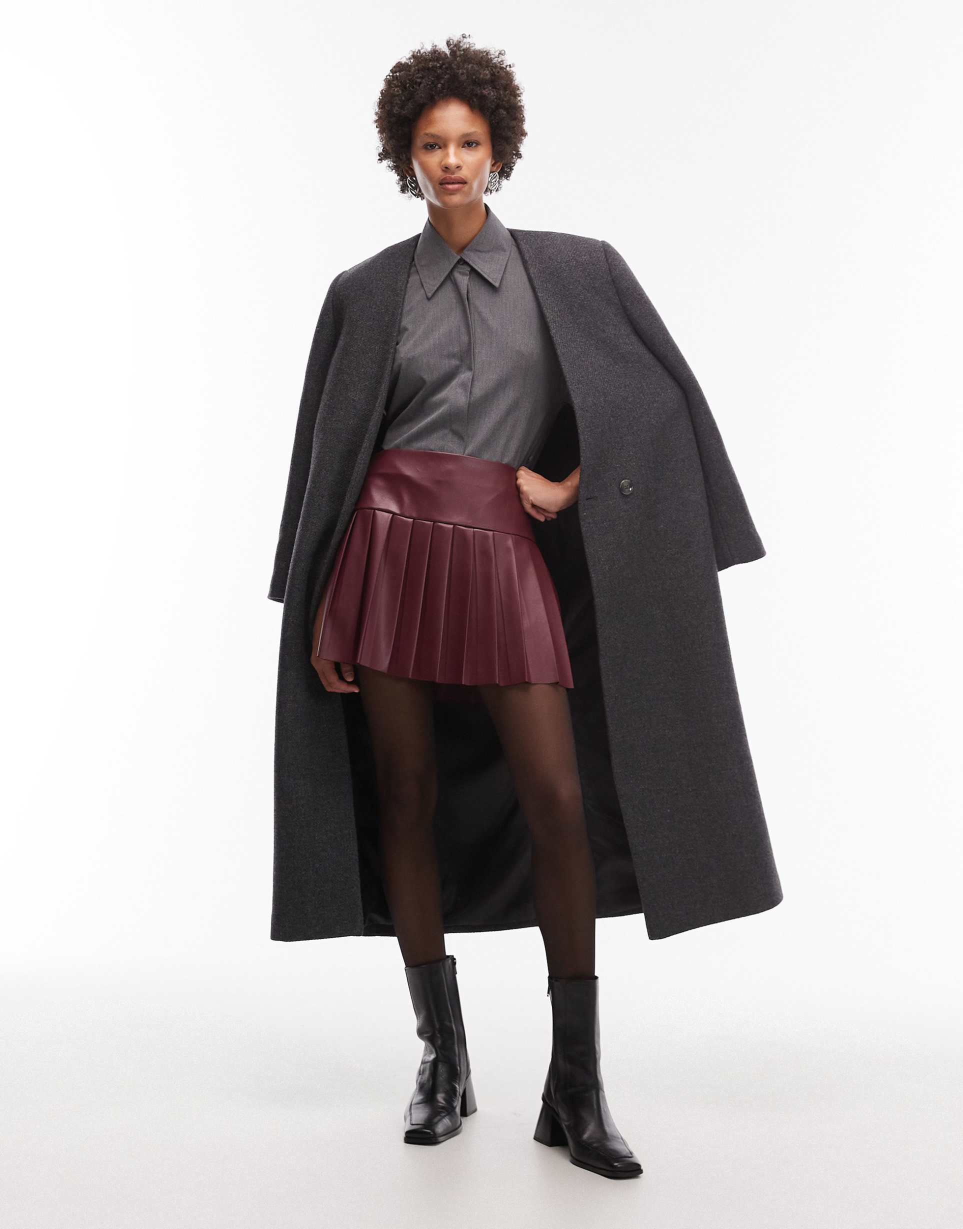 ASOS DESIGN PU PLEATED MINI SKIRT IN BURGUNDY