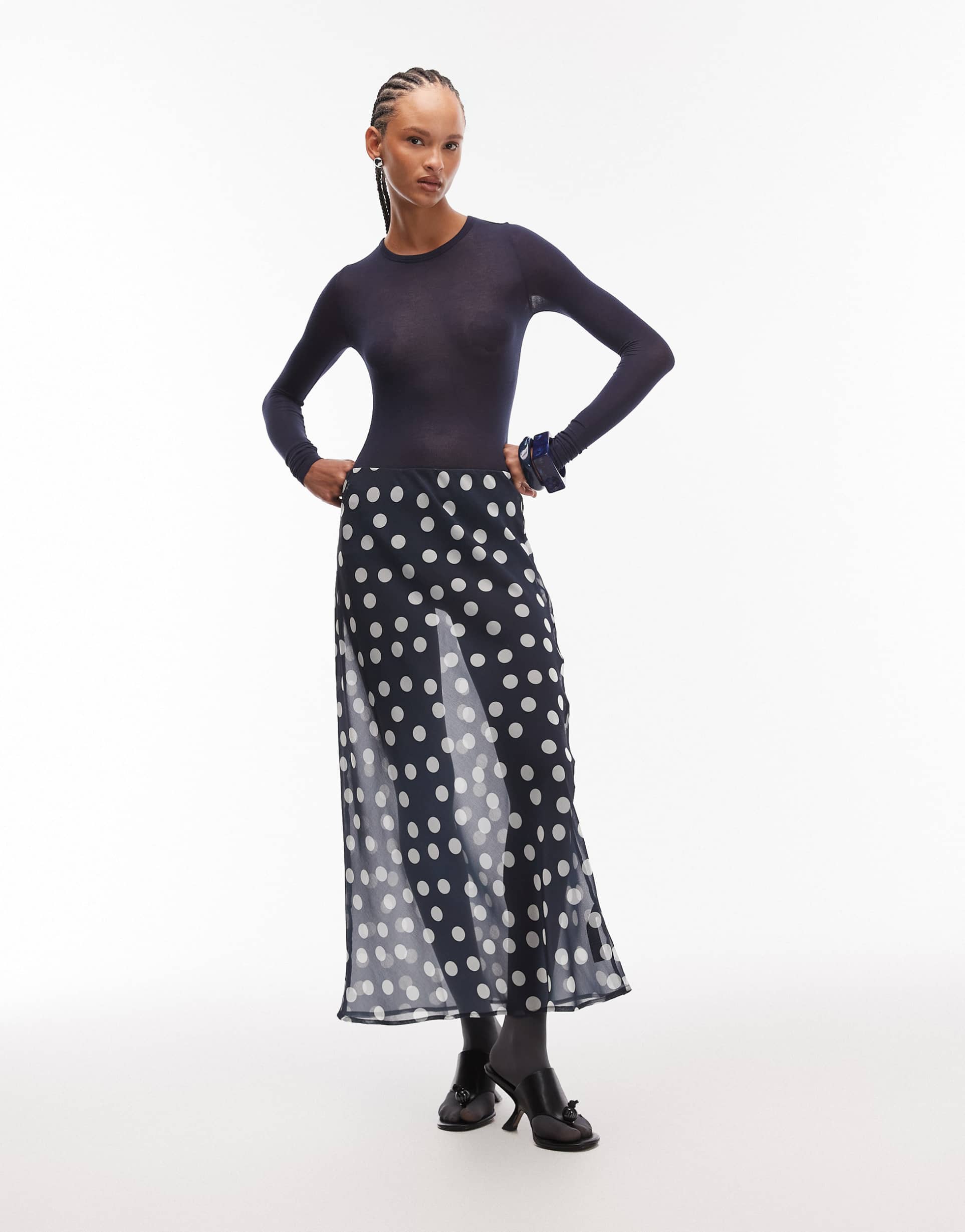 ASOS DESIGN SHEER MAXI SKIRT IN POLKA DOT