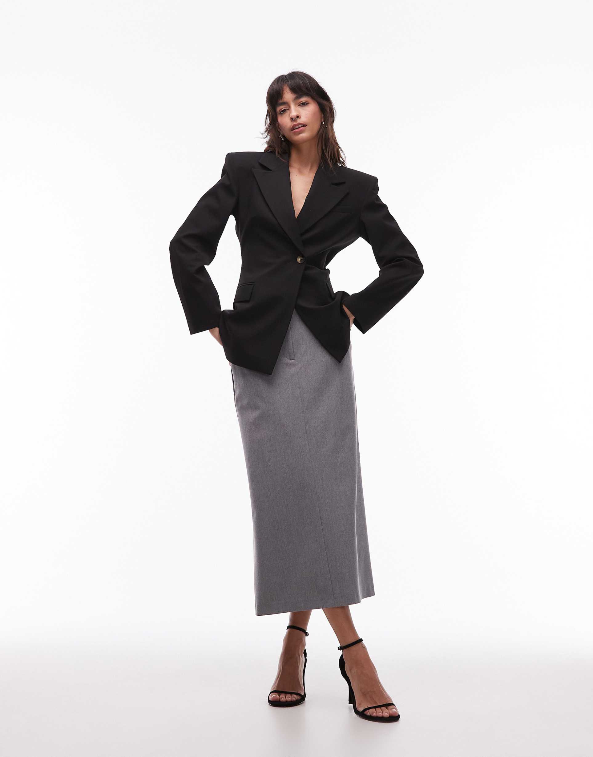 ASOS DESIGN TAILORED BELTED PENCIL MIDI SKIRT IN HEATHER GRAY