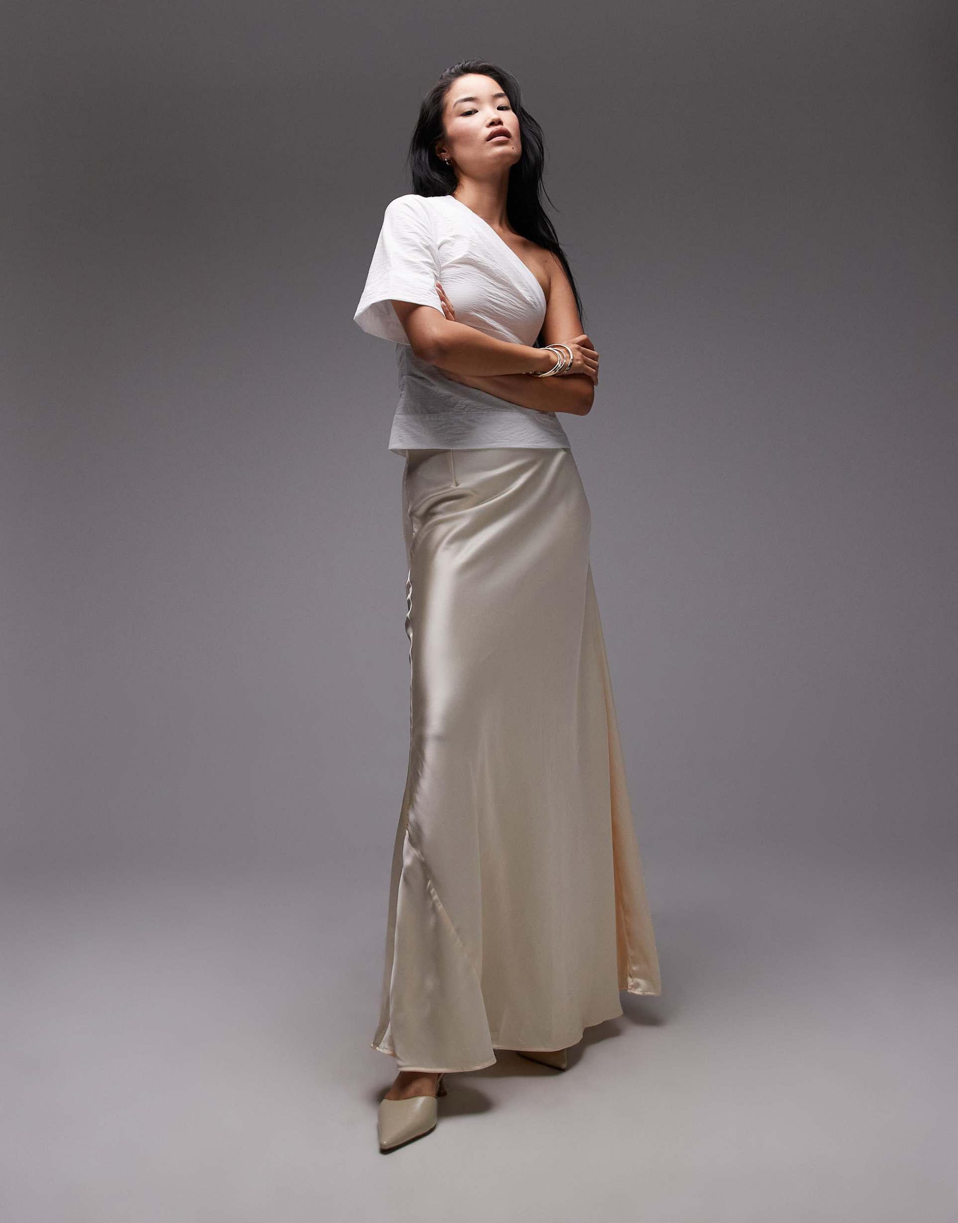 ASOS DESIGN VOLUME DRAPE SATIN MAXI SKIRT IN OYSTER