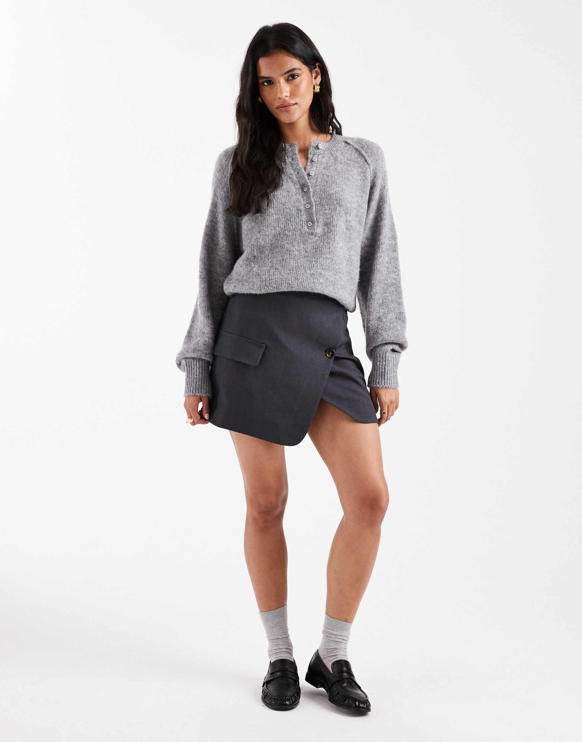 ASOS DESIGN WRAP BUTTON AND POCKET DETAIL MINI SKIRT IN GRAY