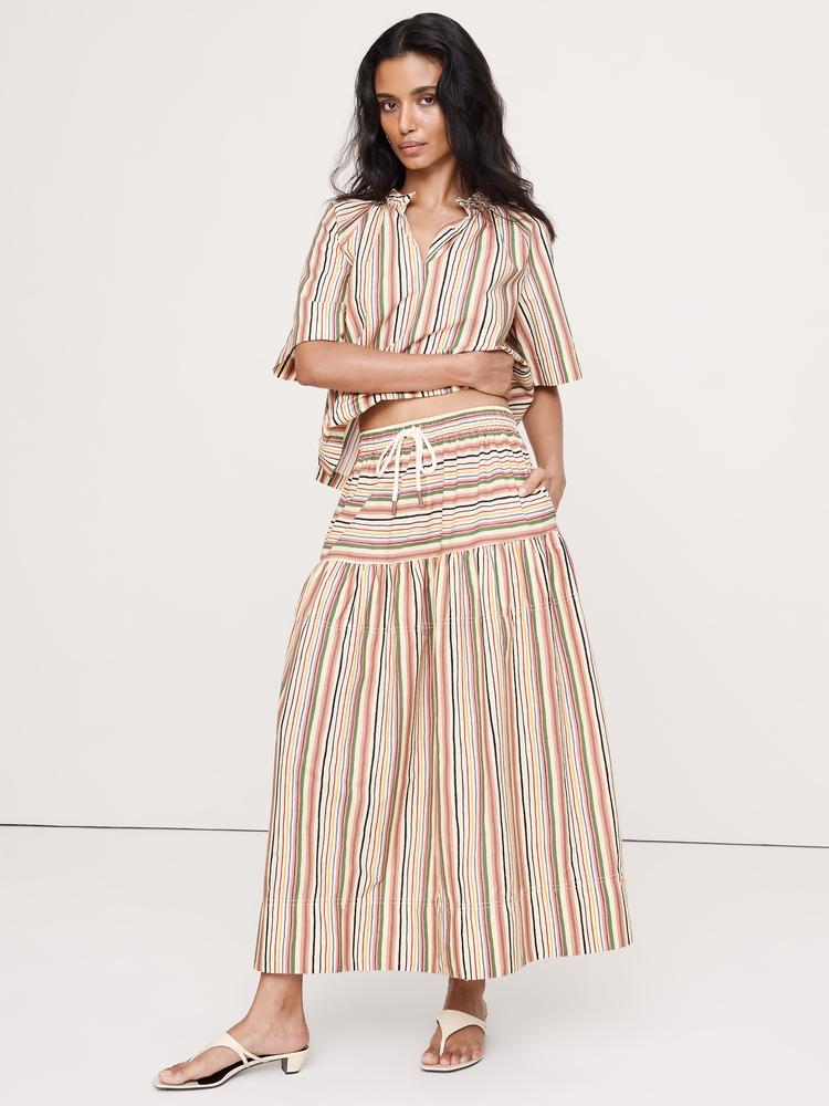 COTTON POPLIN TIERED MAXI SKIRT