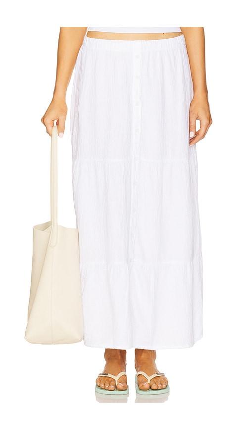 BOBI TIERED BUTTON FRONT MAXI SKIRT IN WHITE.