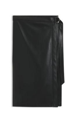 BOSS WRAP-FRONT SKIRT IN FAUX LEATHER - BLACK WOMEN'S A-LINE SKIRTS